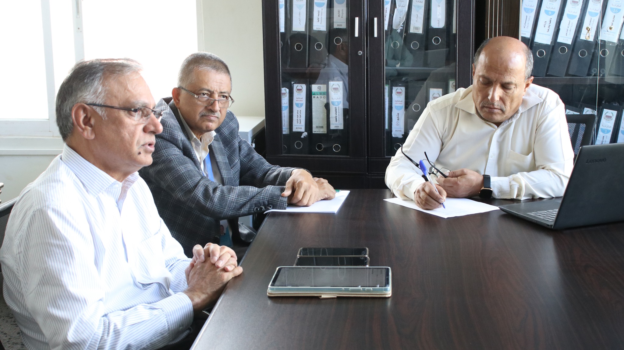 Dr. Abdulkarim Shamsan, Chairman of Bena Charity for Human Development (BCFHD), received today the Country Director of War Child in Yemen, Mr. Arif Jabbar Khan, and his accompanying delegation at BCFHD’s headquarters in Taiz Governorate.
