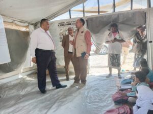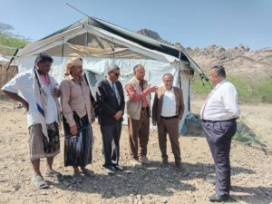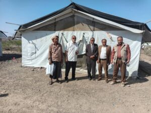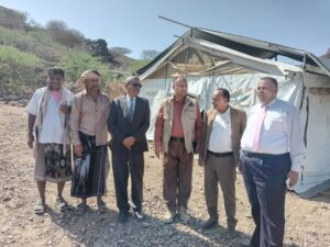 They were received by Mr. Tawfiq Abdulkhabeer, Secretary-General of Bena Charity; Mr. Abdulalam Aqlan, Education Officer for the project; Mr. Saleh Al-Rawdi, Director of the Executive Unit for IDP Sites in Mawza’a District; and Mr. Fawaz Mohammed Salem, Head of the Compensatory Education Department in the district.