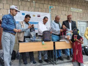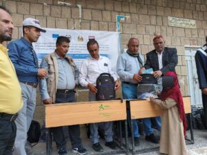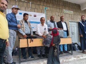Bena Charity for Human Development (BCFHD) launched the distribution of school bags for students and teaching kits for teachers at Al-Ehsan School in Al-Mudhaffar District, Taiz Governorate, as part of the project “Empowering Out of School Children (OOSC) and Children at Risk of Dropping Out (CRDO) through formal and non-formal education, child protection and psychosocial support (PSS) services in five districts of Taiz Governorate, Yemen”, implemented in partnership with War Child and supported by the European Civil Protection and Humanitarian Aid Operations (ECHO).
